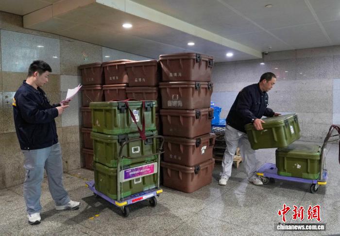 上海3月2日电 (殷坐勤 李维莉)3月2日破晓4时,位于铁道上海虹桥水车站的动车商品货仓灯水透明。二个身着躲青色任务服的身影穿越正在货架之间——43岁的马炯查对单子,28岁的马壮壮搬货码货,他们正正在为当日初收的动车组列车企图餐食商品。